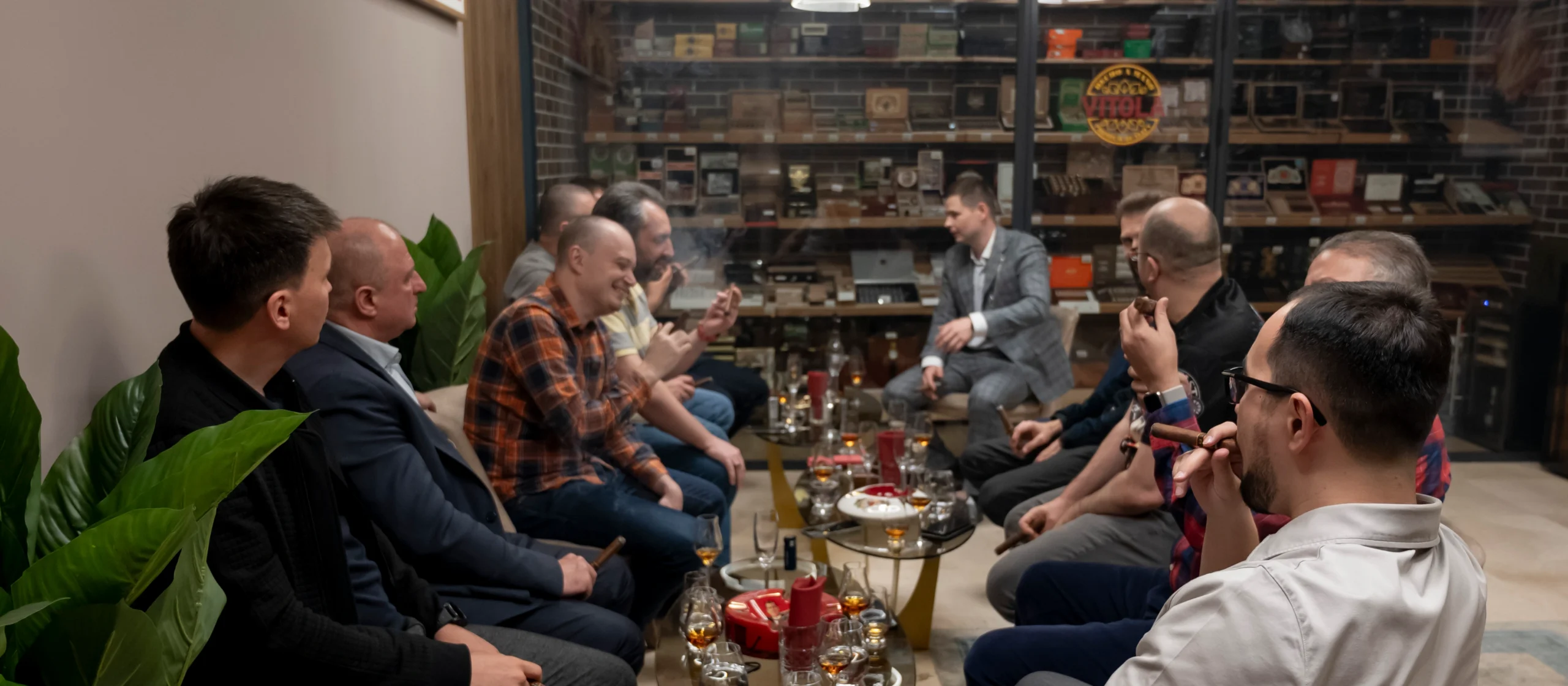 Here we gather for intimate cigar and alcohol tastings, discuss new releases, and simply enjoy the atmosphere in a close circle of connoisseurs.